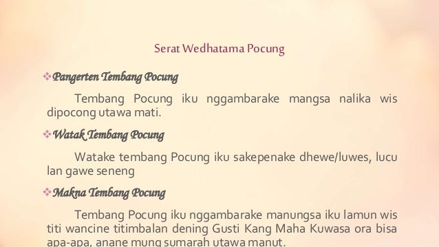 Susah utawa sedih lan melas asih mula cocok kanggo nelakake rasa kesedihan kang ngenesake c. Tembang macapat ini mempunyai watak yang lucu atau jenaka. Contoh Tembang Pocung Tema Ilmu Pendidikan.