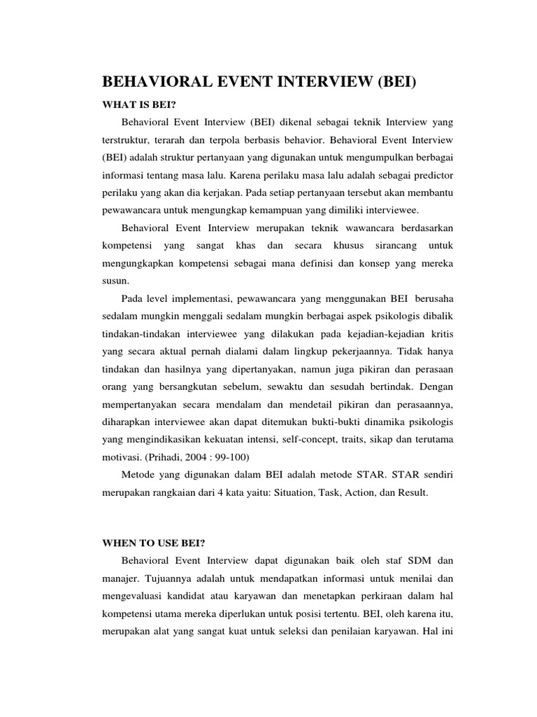 Pagi juga dapat aku bantu kawan. Untuk mendapatkan kandidat tersebut kini banyak perusahaan yang menggunakan metode Behavior Event Interview BEI. Wawancara kerja tradisional cenderung mengajukan pertanyaan normatif seperti apa kelebihan kamu.